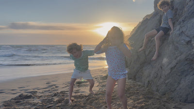 Our Girls Ruffle Collection features one- and two-piece swimsuits with signature white ruffle edges, featuring UPF 50+, designed for sunny beach days. Now available for pre-order.